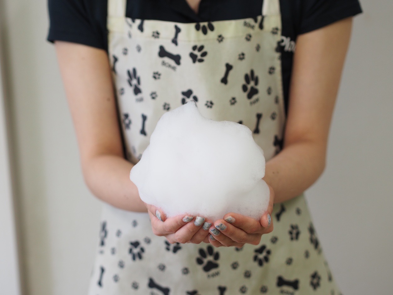 ふわっふわの泡で皮膚も被毛もいたわりながら優しくケア